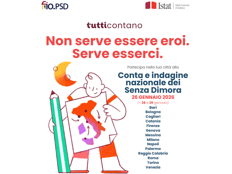 Una fotografia notturna. Ovvero, una notte per fare la differenza. Così la Federazione italiana degli organismi per le persone senza dimora (Fio.psd) presenta la Rilevazione nazionale programmata, in accordo con Istat, per conoscere meglio il fenomeno della grave emarginazione adulta, raccogliendo dati utili a migliorare politiche e servizi dedicati a chi vive in strada.