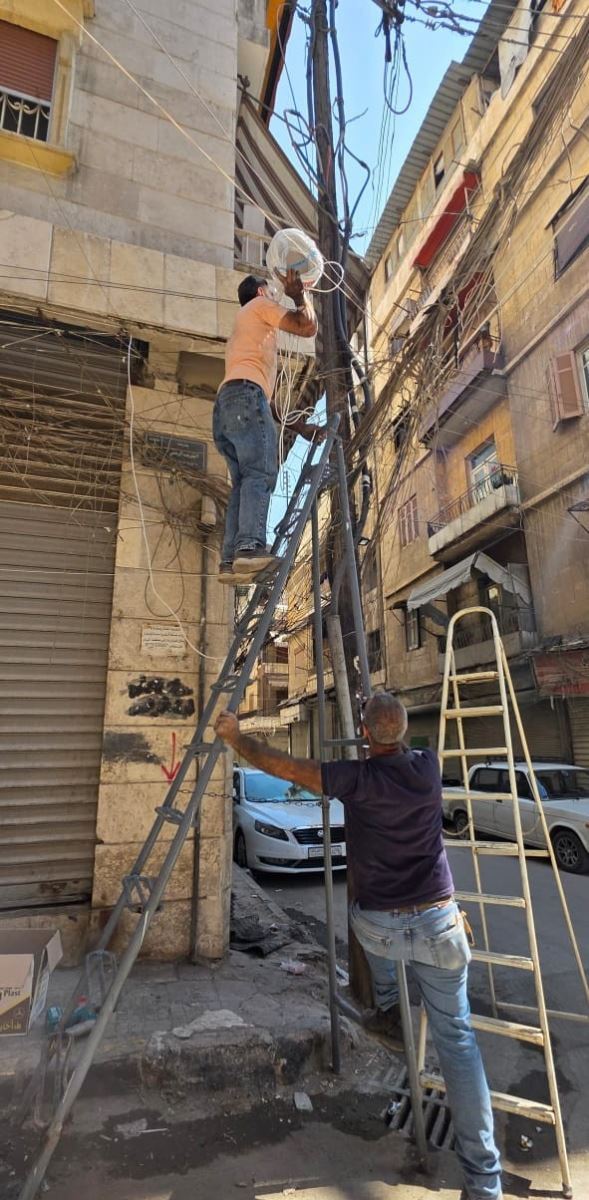 Quartieri centrali come Al-Midan, Soulaymanieh e Telefon Haway, che pur avendo accesso alla corrente per circa 3-4 ore al giorno, presentano ancora gravi difficoltà. In particolare, nel quartiere servito dall’Ospedale Al Faour, è stato possibile installare 70 luci grazie al permesso ricevuto per l’utilizzo del loro sistema energetico;