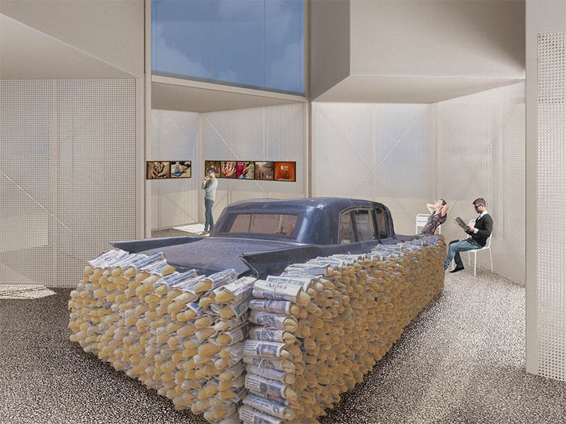 L’opera proveniente dal museo voluto dallo stesso artista a Malpartida nella regione dell'Estremadura in Spagna è costituita da un’automobile Cadillac cinta da forme di pane. L’accostamento irriverente tra uno status symbol e il bene di prima necessità per antonomasia rappresenta una denuncia contro la società consumista.