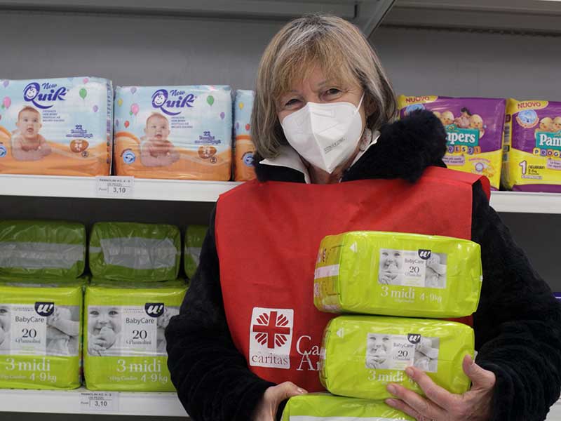 Empori della Solidarietà che hanno distribuito aiuti alimentari in maniera intelligente e rispettosa, i servizi essenziali come il