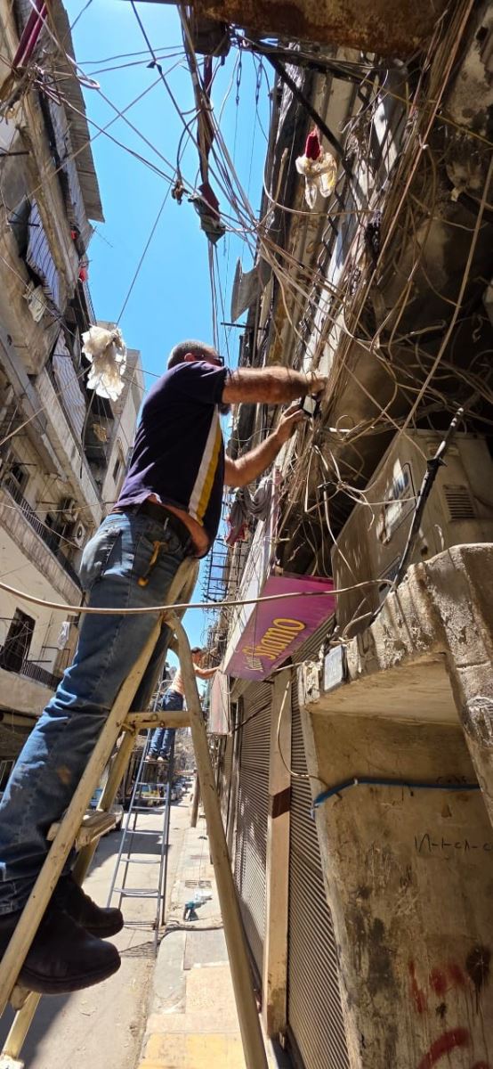 Quartieri centrali come Al-Midan, Soulaymanieh e Telefon Haway, che pur avendo accesso alla corrente per circa 3-4 ore al giorno, presentano ancora gravi difficoltà. In particolare, nel quartiere servito dall’Ospedale Al Faour, è stato possibile installare 70 luci grazie al permesso ricevuto per l’utilizzo del loro sistema energetico;